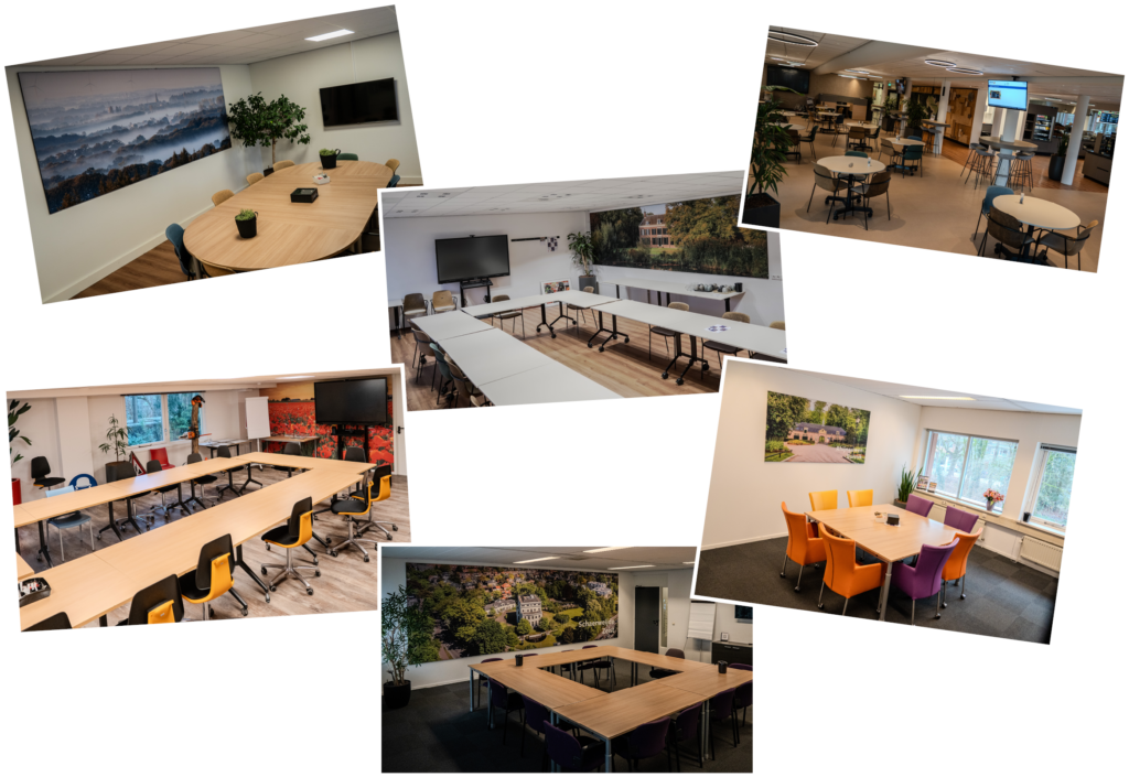 Onze vergaderruimtes en leslokalen zijn modern, sfeervol en functioneel voor groepen van 4 tot 100 personen.